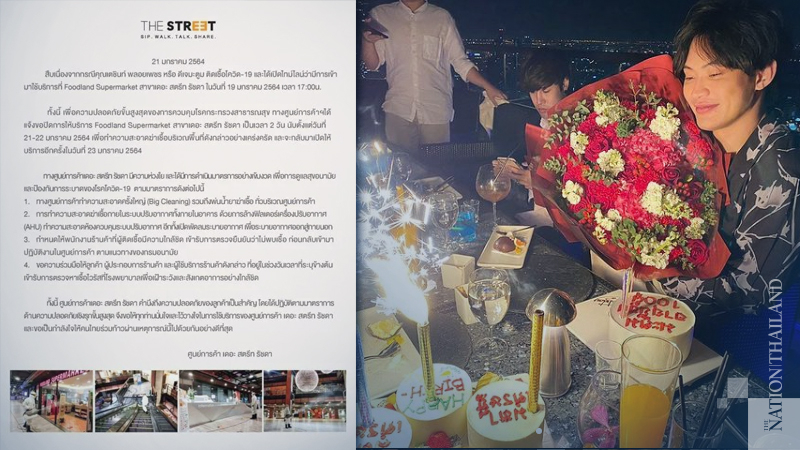 The Street Ratchada mall in Din Daeng district stated that Techin Ploypetch, better known as DJ Matoom, revealed he had tested positive after visiting its Foodland branch on Tuesday (January 19) at 7pm.