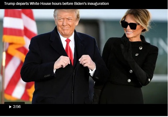 Earlier in the chilly winter morning, the Trumps walked out of the White House residence for the final time. A subdued Trump told reporters that serving had been the “honor of a lifetime.”
