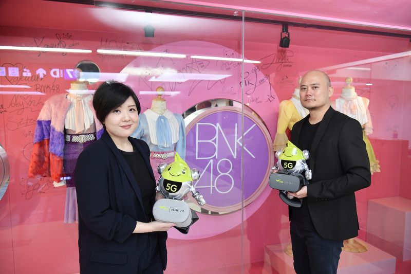 นายณัฐพล บวรวัฒนะ Chief Operating Officer และนางสาวบุญจิรา ธีระมโน General Manager of Marketing & Operation ทีมผู้บริหาร บริษัท อินดิเพนเด้นท์ อาร์ทิสท์ เมเนจเม้นท์ จำกัด หรือ iAM (ไอแอม) ต้นสังกัดศิลปินไอดอลหญิงวง BNK48 พร้อมด้วย 6 ศิลปินไอดอลหญิงวง BNK48 อาทิ เจน มิวสิค ปัญ โมบายล์ เนย เจนนิษฐ์ เป็นตัวแทนคนรุ่นใหม่ ตอกย้ำกระแสแรงไม่หยุด ปลื้มจับมือ AIS 5G เครือข่ายอันดับ 1 ในไทย เดินหน้าผลิตคอนเทนต์ VR และ AR ภายใต้แคมเปญสุดปัง “AIS 5G NEXT REALITY x NEW GENERATIONS” เสิร์ฟความบันเทิงสุดเอ็กซ์คลูซีฟ พร้อมเปิดประตูความล้ำเหนือจินตนาการให้คนไทยทุกเจเนอเรชันได้สัมผัส
