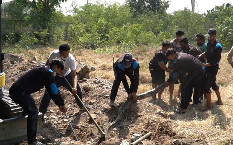 แต่ก่อนที่กู้ภัยกับรถแบ็คโฮจะถอนตัวก็สังเกตเห็นว่ายังมีงูอีกตัวที่ขนาดใหญ่กว่าอยู่ในโพรงเดียวกันด้วย จึงใช้รถแบ็คโฮขุดตามเอาตัวต่อเนื่อง ซึ่งรอบนี้กินเวลาร่วมชั่วโมงเพราะงูตัวที่ 2 มีขนาดใหญ่และเรี่ยวแรงมากกว่าตัวแรก แต่ในที่สุดกู้ภัยก็นำตัวออกมาได้อย่างทุลักทุเล และเมื่อตรวจสอบก็พบว่าเป็นงูเพศเมีย วัดขนาดได้ความยาว 5.57เมตร ซึ่งคาดว่างูทั้ง 2 ตัวเป็นคู่รักที่อยู่ด้วยกัน กู้ภัยจึงนำตัวทั้งคู่ไปปล่อยยังพื้นที่ป่าห่างไกลชุมชนเพื่อความปลอดภัย