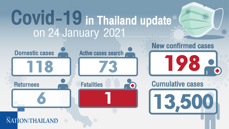 A woman in Samut Sakhon, 73, who had an underlying disease (high blood pressure, Alzheimers, and epilepsy) later developed pneumonia and passed away on January 23. She got the infection from her family member on January 4 and was confirmed positive on January 9.