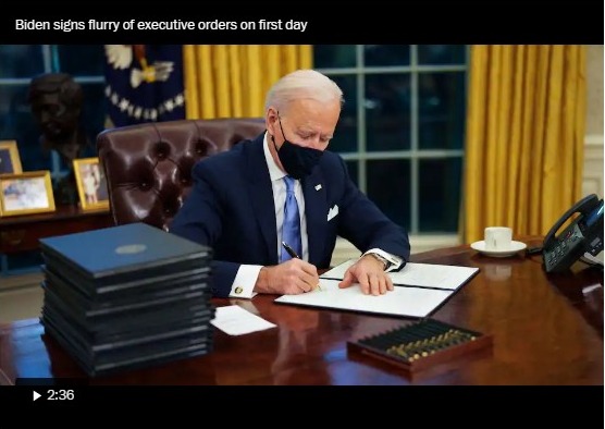Over about 48 hours, Biden signed more than two dozen executive actions and one piece of legislation – granting his Defense Secretary Lloyd Austin a waiver exempting him from a law requiring the head of the Pentagon to have been out of uniform for at least seven years.