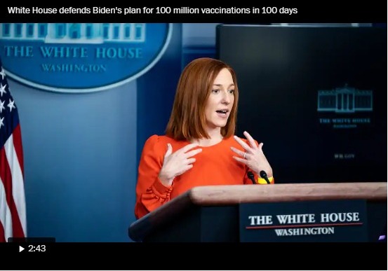 White House press secretary Jen Psaki has highlighted the support for Biden’s covid relief package from business groups, saying there has been an “outpouring of support” for various parts of the package “from everyone from Bernie Sanders to the Chamber of Commerce.”