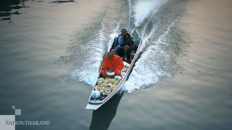Monks who stay in Buddhist monasteries at many riverside and canalside temples in Nonthaburi province still use boats as a vehicle for receiving alms since early morning during the Buddhist Lent. Though there are many garden trees in the suburbs, pollution remains an unescapable reality. Even on Sunday morning, though the air quality index in Bangkok and its suburbs showed improvement, in many areas it was at levels not safe for outdoor activities.