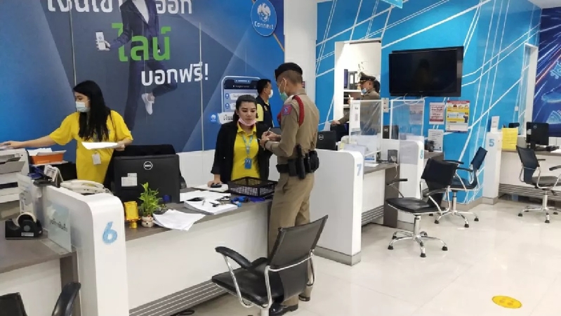 Lat Phrao Police Station were alerted at 8.30pm to the armed robbery at the bank’s branch located on the third floor of The Mall Bang Kapi shopping centre.