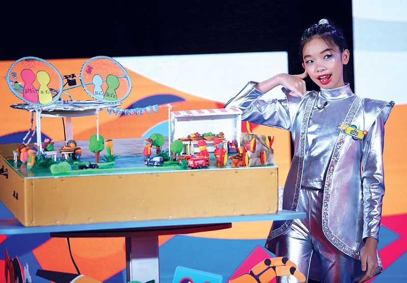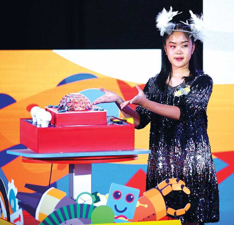 น้องโบนัส ด.ญ.พัชระวดี สิริสุขสง่าพงษ์ ผู้ชนะเลิศ กับผลงาน “Sunroof ช่วยเด็กติดในรถ”