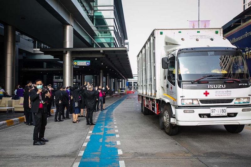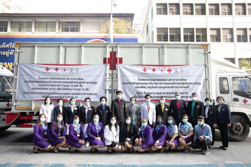 คุณหญิงชฎา วัฒนศิริธรรม เหรัญญิกสภากาชาดไทย เป็นประธานในพิธีปล่อยขบวนคาราวานพัสดุ ครุภัณฑ์ อุปกรณ์การแพทย์ ร่วมกับ ศ.นพ.สุทธิพงศ์ วัชรสินธุ ผู้อำนวยการโรงพยาบาลจุฬาลงกรณ์ นายขรรค์ ประจวบเหมาะ ผู้อำนวยการสำนักงานจัดหารายได้ สภากาชาดไทย นางจันทร์ประภา วิชิตชลชัย รองผู้อำนวยการสำนักงานจัดหารายได้ สภากาชาดไทย พล.อ.ต.นพ.อิทธพร คณะเจริญ เลขาธิการแพทยสภา รศ.พญ.ภัณฑิลา หฤทัยวิจิตรโชค ผู้ช่วยผู้อำนวยการฯ ด้านจัดซื้อ พร้อมด้วยคณะผู้บริหาร แพทย์ พยาบาล บุคลากร โรงพยาบาลจุฬาลงกรณ์ สภากาชาดไทย ผู้บริหารสภากาชาดไทย สำนักงานบรรเทาทุกข์และประชานามัยพิทักษ์ สภากาชาดไทย มูลนิธิธรรมาภิบาลทางการแพทย์ และนักศึกษาหลักสูตรประกาศนียบัตรธรรมาภิบาลทางการแพทย์ สถาบันพระปกเกล้า รุ่นที่ 9 เพื่อเดินทางมอบให้กับโรงพยาบาลมหาราชนครศรีธรรมราช จังหวัดนครศรีธรรมราช และส่งต่อช่วยเหลือโรงพยาบาลที่ได้รับผลกระทบจากอุทกภัย ณ บริเวณด้านหน้าอาคารภูมิสิริมังคลานุสรณ์ เมื่อวันที่ 24 มกราคม 2564