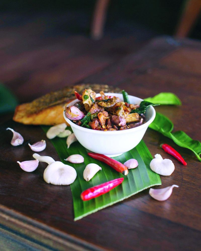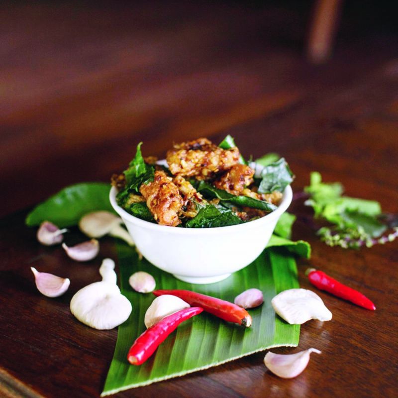 กะเพราแซลมอนกรอบและเห็ด (ราคา 99 บาท) อร่อยได้คุณค่ามีโปรตีนจากเนื้อปลาแซลมอนและสารต้านอนุมูลอิสระคุณประโยชน์จากเห็ด ปรุงกับสมุนไพรเพื่อให้ได้รสขาติแซ่บจัดจ้าน นำทุกอย่างมาทอดจนกรอบทั้งเนื้อและหนังปลาแซลมอน รวมทั้งใบกะเพรา กระเทียม หอม และพริกคั่วจนหอมเตะจมูกกรอบอร่อยสไตล์ไทย