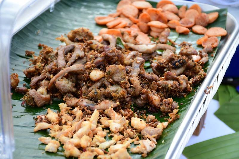ส่วนเมนูที่ทางโรงแรมนำแนะนำลูกค้า คือ หมูทอดสมุนไพรรสชาติดี เนื้อนุ่มๆ หอมสมุนไพร ทานกับข้าวเหนียวเขี้ยวงูร้อนๆ ของดีของจังหวัดเชียงราย ส่วนน้ำพริกหนุ่มนั้นให้ฟรี แต่อร่อยจนต้องซื้อเพิ่ม