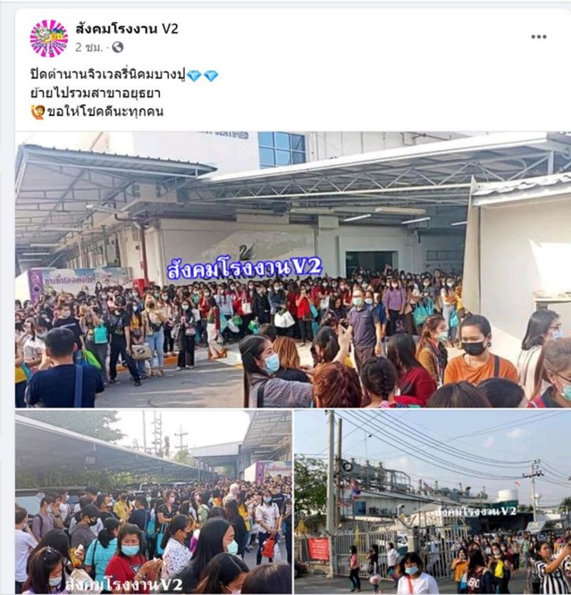 วันที่ 28 มกราคม 2564 เฟซบุ๊กเพจ “เครือสหพัฒน์-แหลมฉบัง-ชลบุรี” ได้โพสต์คลิปพนักงานของบริษัท แมรีกอท จิวเวลรี่ (ประเทศไทย) นิคมอุตสาหกรรมบางปู จ.สมุทรปราการ กำลังเก็บข้าวเก็บของเดินทางกลับบ้าน เนื่องจากโรงงานปิด เพื่อยุบไปใช้โรงงานผลิตที่นิคมอุตสาหกรรมไฮเทค บางปะอิน จ.พระนครอยุธยา แทน อันเนื่องมาจากผลกระทบของโควิด