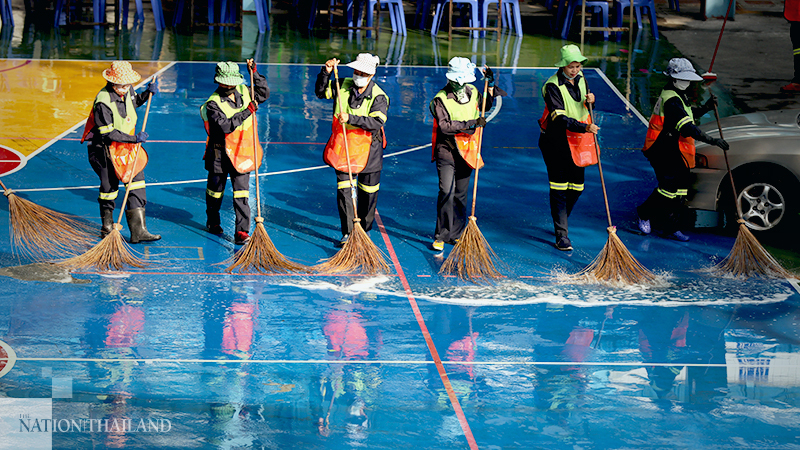 Staff and teachers of Bangkok’s Ban Bang Kapi School got together to give the school premises a proper clean before students can return to classes on Monday (February 1).
