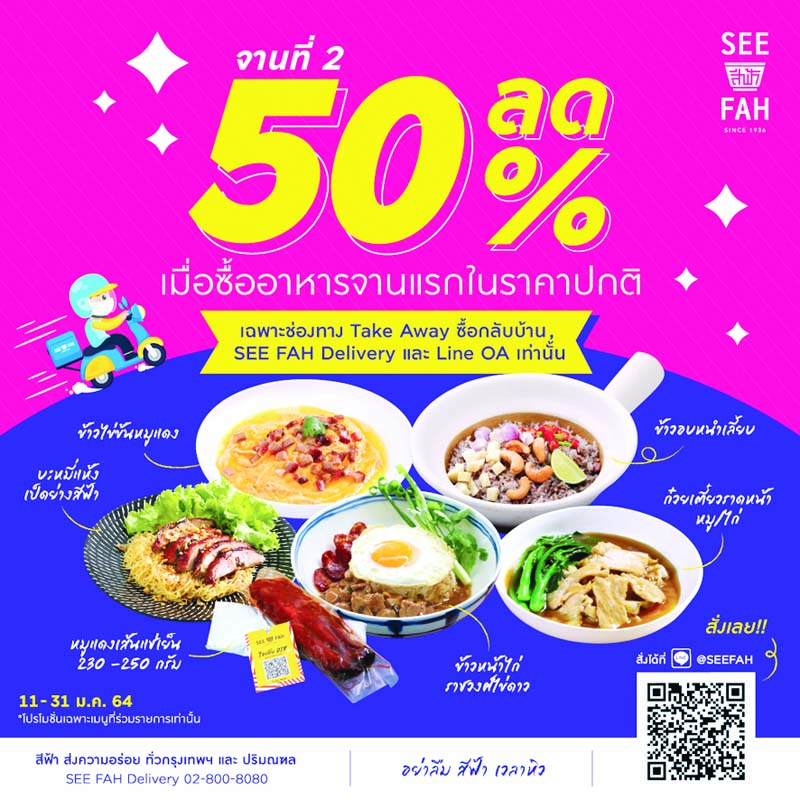 ร้านอาหารสีฟ้า ชวนชิมเมนูยอดฮิต อาทิ ข้าวไข่ข้นหมูแดง, บะหมี่แห้งเป็ดย่างสีฟ้า, ข้าวหน้าไก่ราชวงศ์ไข่ดาว ฯลฯ กับ Promotion จานที่ 2ลด 50% สั่งกลับบ้านหรือสั่งเดลิเวอรี่ ถึง 31 ม.ค. ที่ ร้านอาหารสีฟ้า ชั้น G สาขาไลฟ์เซ็นเตอร์ (คิวเฮ้าส์ ลุมพินี)โทร.02-6777244