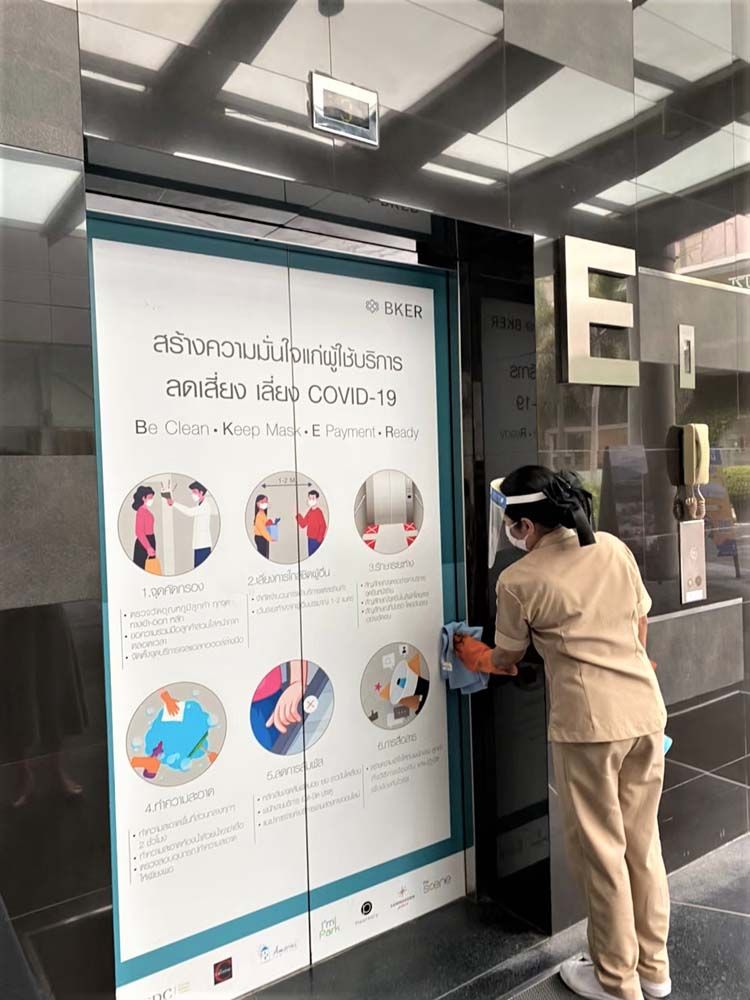 โดยทั่วไปการแพร่ระบาดของเชื้อโรค จะอยู่ในสถานที่ปิด แออัด ไม่มีอากาศถ่ายเท และไม่มีความสะอาดปลอดภัยทางสุขอนามัย แต่จุดเด่นของคอมมูนิตี้มอลล์ คือเป็นสถานที่เปิดโล่ง ปลอดโปร่ง อากาศหมุนเวียนถ่ายเทได้สะดวก ทำให้ไม่เสี่ยงแก่การเพาะเชื้อโรค แต่อย่างไรก็ตาม บริษัทฯ ตระหนักถึงสุขภาพและความปลอดภัยของพนักงานทุกคน ร้านค้าผู้เช่า และลูกค้าที่มาใช้บริการ จึงออกประกาศจัดมาตรการป้องกันและเฝ้าระวังการแพร่ระบาดไวรัสโควิด-19 กำชับต่อทุกหน่วยงานให้เข้มงวดและดำเนินมาตรการป้องกันขั้นสูงสุด ทั้งการเฝ้าระวัง การป้องกัน และการควบคุม ตามที่กระทรวงสาธารณสุขและราชกิจจานุเบกษา ประกาศให้โรคติดเชื้อไวรัสโคโรนา 2019 หรือ โควิด-19(Coronavirus Disease 2019 : COVID-19) เป็นโรคติดต่ออันตราย พร้อมดำเนินการตามมาตรการของภาครัฐด้วยการให้ความร่วมมือในการปรับเปลี่ยนเวลาเปิด-ปิด ศูนย์การค้าฯเป็นการชั่วคราว เป็นเวลา 11.00-21.00 น. จนกว่าจะมีการเปลี่ยนแปลง โดยศูนย์การค้าที่บริหารงานภายใต้กองทรัสต์ BKER แบ่งตามประกาศ 3 จังหวัด ประกอบด้วย1.กรุงเทพมหานคร ได้แก่ คริสตัล ดีไซน์ เซ็นเตอร์ (ซีดีซี), เดอะ คริสตัล เอกมัย-รามอินทรา, เพลินนารี่ มอลล์, เดอะซีน ทาวน์อินทาวน์, อมอรินี่, แอมพาร์ค (จุฬา) และสัมมากรเพลส รามคำแหง 2.นนทบุรี ได้แก่ เดอะ คริสตัล เอสบี ราชพฤกษ์, เดอะ คริสตัล พีทีที ชัยพฤกษ์ และสัมมากรเพลส ราชพฤกษ์ และ 3.ปทุมธานี ได้แก่ สัมมากร เพลส รังสิต