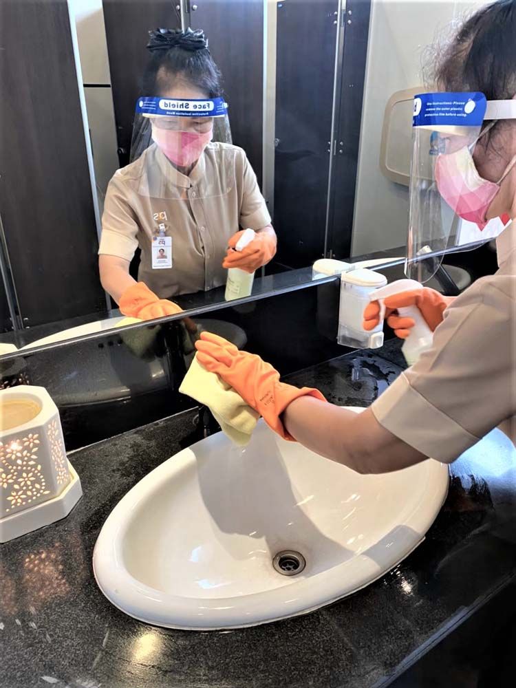 นอกจากนี้ ยังรณรงค์และขอความร่วมมือจากร้านค้าผู้เช่า ให้ความรู้ความเข้าใจเกี่ยวกับการป้องกันเชื้อไวรัสดังกล่าว และร่วมกันทำความสะอาดพื้นที่ภายในร้าน (Big Cleaning) เพื่อสร้างความปลอดภัยและความเชื่อมั่นให้กับลูกค้าที่มาใช้บริการ รวมทั้งพนักงานของร้านค้าผู้เช่า พร้อมดำเนินการตามมาตรการของศูนย์การค้าฯ ดูแลจัดการอย่างเคร่งครัด ในด้านพนักงานร้านค้า ให้พนักงานตรวจวัดอุณหภูมิก่อนเข้าปฏิบัติงานภายในศูนย์การค้าฯ วันละ2 ครั้ง เช้าและบ่าย กวดขันพนักงานร้านค้าในการสวมหน้ากากอนามัย และถุงมือตลอดเวลาที่เข้าปฏิบัติงานภายในศูนย์การค้าฯ ตรวจสอบประวัติการเดินทางของพนักงาน หากพบมีประวัติสัมผัสผู้มีความเสี่ยงสูง หรือเดินทางไปยังบริเวณพื้นที่ที่มีความเสี่ยงสูง ให้แจ้งฝ่ายบริหารศูนย์การค้าฯทันที และงดเข้าปฏิบัติงานในศูนย์การค้าฯ เป็นเวลา14 วัน รวมถึงแสดงผลตรวจรับรองแพทย์ว่าไม่มีเชื้อไวรัสโคโรนา (COVID-19) ก่อนกลับเข้ามาปฏิบัติงานในศูนย์การค้าฯ และด้านอาคาร สถานที่ ดำเนินการทำความสะอาดบริเวณร้านค้า ตามนโยบายของภาครัฐ จำกัดจำนวนผู้เข้าใช้บริการในพื้นที่ศูนย์การค้าฯ ไม่เกิน 1 คนต่อตารางเมตรหรืออาจพิจารณาให้มีทางเข้า-ออกทางเดียว เพื่อควบคุมการให้บริการได้ทั่วถึง และหลีกเลี่ยงการจัดกิจกรรมใดๆ ที่อาจทำให้ผู้มาใช้บริการมีการรวมตัวกัน