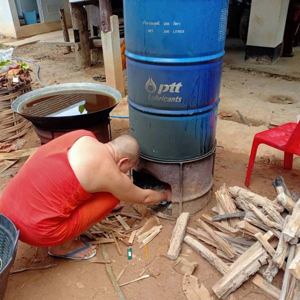 สำหรับในวันนี้ (31 มกราคม 2564) ได้ต้มใบลานที่วัดป่าหัด อ.ปัว จ.น่าน เป็นวันที่ 2 ยังคงได้รับแรงศรัทธาจากพระสงฆ์สามเณรของวัดเหมือนเดิม โดยเณรทั้งหลายได้ซึมซับขบวนการต้มใบลาน เริ่มจากการช่วยกันขนใบลานจากต้น นำมาเลาะเอาก้านแข็งของใบออกพร้อมกับชาวบ้าน เลือกใบที่ได้ขนาดที่จะใช้จารนำมาม้วน มัดตอกให้แน่นแล้วนำไปต้ม โดยมีส่วนผสม สบู่ลาย ขมิ้น ฝักส้มป่อยแห้ง มะกรูด ต้มใบลานให้สุกแล้วนำไปตากแดดให้แห้ง