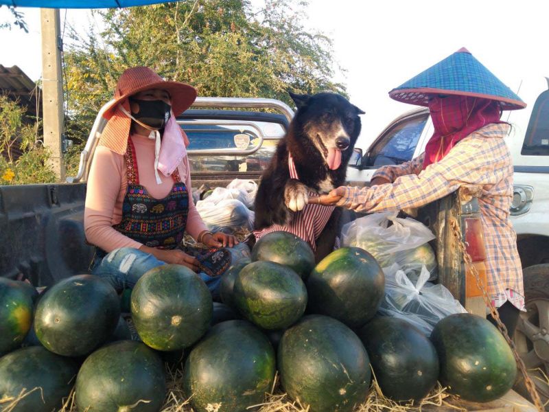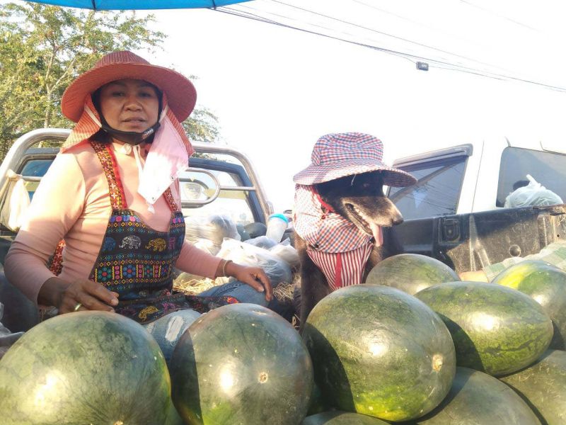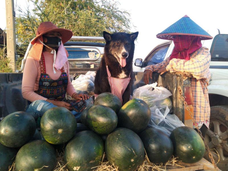 น่ารักที่สุด! ตูบแสนรู้ช่วยเจ้าของนั่งขายแตงโม ยกขาไหว้ขอบคุณลูกค้าซะด้วย