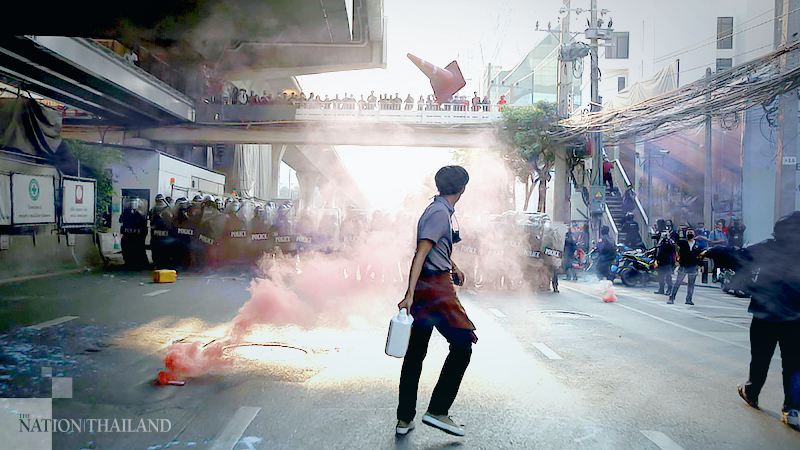 A large number of protesters, led by the “We Volunteers” network, showed up at the Myanmar Embassy on Sathorn Road at 3.30pm on Monday to condemn the military-led coup.