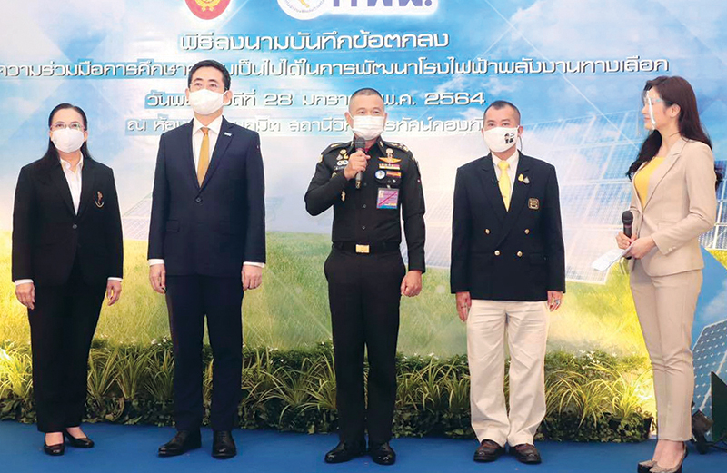 พล.อ.ณรงค์พันธ์ จิตต์แก้วแท้ ผบ.ทบ. และ บุญญนิตย์ วงศ์รักมิตร ผู้ว่าการ กฟผ. ร่วมลงนามบันทึกข้อตกลงความร่วมมือการศึกษาความเป็นไปได้ในการพัฒนาโรงไฟฟ้าพลังงานทางเลือก