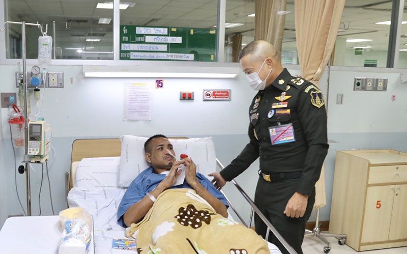 ในการนี้ผู้บัญชาการทหารบกเข้าเยี่ยมกำลังพลที่บาดเจ็บจากเหตุการสู้รบในระหว่างปฏิบัติหน้าที่ในพื้นที่ จชต. 4 รายคือ สิบเอกวัชรา ไชยแก้ว ถูกยิงที่ใบหน้าด้ายซ้ายกระดูกใบหน้าแตก ได้รับการผ่าตัดแล้ว, สิบโทอนุชา ดาลาด ถูกยิงบริเวณกระดูกต้นคอทับเส้นประสาทไม่สามารถขยับร่างกายได้ , สิบโทสุพจน์ เจริญสุข บาดเจ็บจากการถูกสะเก็ดระเบิดที่ศีรษะไม่รู้สึกตัว อยู่ระหว่างการบำบัดฟื้นฟู , จ่าสิบเอกชัยวัตน์ จันทร์เอ้ย กระดูกสันหลังทับเส้นประสาทขาอ่อนแรงอยู่ระหว่างกายภาพบำบัด