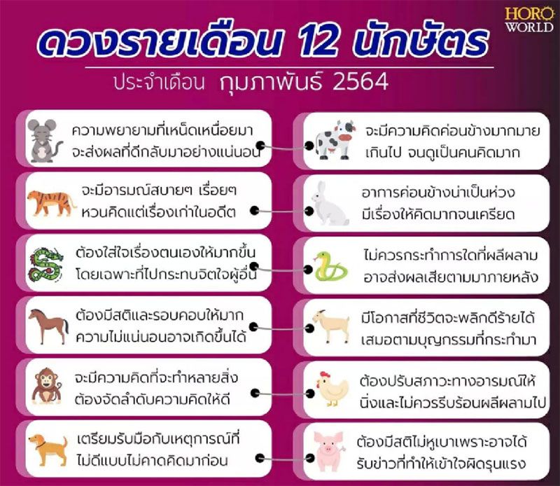 วันที่ 4 กุมภาพันธ์ 2564 เฟซบุ๊กแฟนเพจ “หมอกฤษณ์ คอนเฟิร์ม” เปิดดวงชะตา 12 นักษัตร เดือนก.พ.ดวงชะตาใครดีขึ้นและใครต้องระวัง