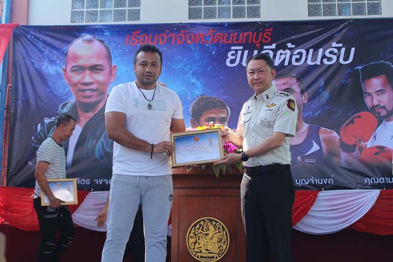 ภายในงานซึ่งได้รับเกียรติจากนักมวยระดับโลก คือ พ.ต.สมจิต จงจอหอ และ มนัส บุญจำนงค์ แชมป์เหรียญทองโอลิมปิก ร่วมเปิดค่ายมวยดังกล่าวด้วย กีฬาชกมวยมุ่งส่งเสริมให้ผู้ต้องขังที่มีความสนใจและพรสวรรค์ด้านกีฬามวย ได้รับการฝึกฝน พัฒนาต่อยอดทักษะฝีมือ ตลอดจนได้โชว์ความสามารถให้เป็นที่ยอมรับมีทัศนคติที่ดี ทั้งต่อตนเองและสังคม สามารถปรับตัวอยู่ในสังคมภายนอกได้อย่างปกติสุข ไม่หวนกลับมากระทำความผิดซ้ำภายหลังพ้นโทษ สำหรับในวันนี้นอกจากจะเป็นการเปิดโครงการฝีกอบรมกีฬามวยเพื่อฝึกทักษะวิชาชีพให้กับผู้ต้องขังแล้ว ยังเป็นการเปิดค่ายมวยเรือนจำหวัดนนทบุรีอย่างเป็นทางการ โดยคาดหวังว่าในอนาคต จะมีนักมวยมืออาชีพเกิดขึ้นภายในรั้วเรือนจำ และได้รับการให้โอกาสจากสังคมในการกลับตนเป็นคนดีในอนาคตต่อไป
