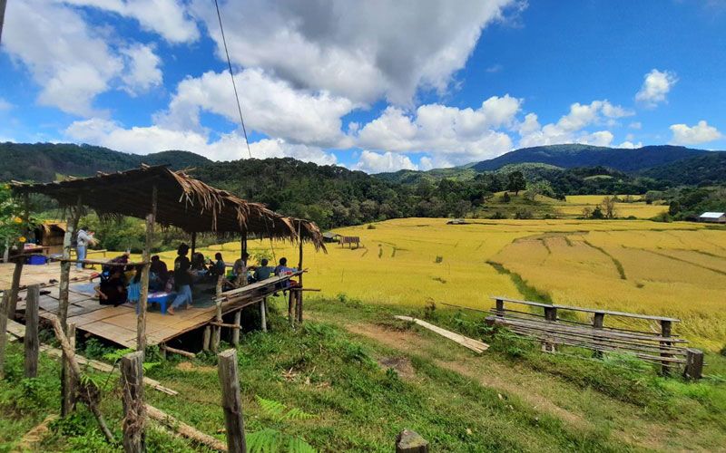 ดังนั้น อำเภอขุนยวม จะได้ช่วงเวลาการท่องเที่ยวตั้งแต่เดือนพฤศจิกายน จนถึงเดือนพฤษภาคม เข้าหน้าฝนหรือช่วงกรีนซีซั่นพอดี และจากการขายของหรือสินค้าของที่ระลึกบนศาลาแปดเหลี่ยม ซึ่งท่านนายอำเภอแจ้งว่ามีนักท่องเที่ยวขึ้นไปถึงบนศาลาแปดเหลี่ยมประมาณไม่ถึง 30 เปอร์เซ็นต์ในปี 2562 ขายของได้ตลอดเดือน 1.2 ล้านบาท และในปี 2563 ปีนี้ขายได้ 1.3 ล้านบาท ซึ่งบรรดากลุ่มผู้ค้าในปีหน้าของลงมาขายที่บริเวณวงเวียนข้างล่างซึ่งจะมีกลุ่มผู้สูงอายุและเป็นคนมีกำลังซื้อคาดว่าถ้าขายบริเวณนั่นจะขายได้ไม่น้อยกว่า 3-4 ล้านบาท และปีนี้ทาง อบต.แม่อูคอได้งบประมาณมาพัฒนาพื้นที่ทุ่งดอกบัวตองบานจำนวน 4 ล้านบาท