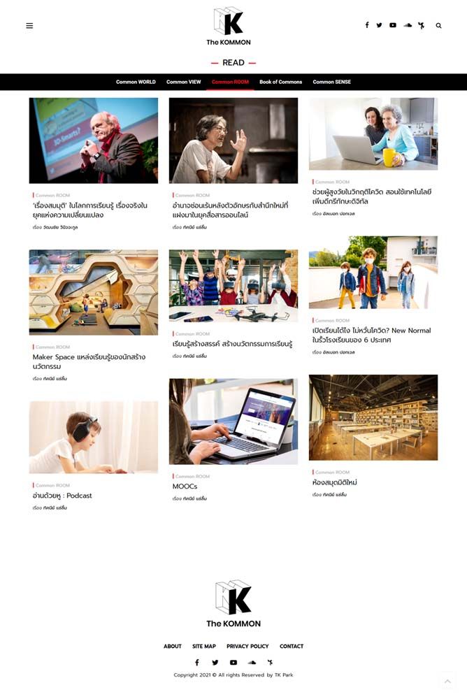 สถาบันอุทยานการเรียนรู้ TK Park เปิดตัวเว็บคอนเทนต์ใหม่“The KOMMON” ตอบโจทย์ความสนใจด้านการเรียนรู้แบบเกาะติดเทรนด์ ด้วยเนื้อหาสาระที่ครอบคลุมด้านการพัฒนาแหล่งเรียนรู้ ห้องสมุด หนังสือการส่งเสริมการอ่าน นวัตกรรมการเรียนรู้ เน้นปรากฏการณ์ความเคลื่อนไหว แนวโน้มและการเปลี่ยนแปลงที่เกิดขึ้นทั้งในและต่างประเทศ เปิดตัวสู่สาธารณชนครั้งแรก เมื่อวันที่ 21 มกราคม2564 เพื่อเป็นพื้นที่แสวงหาความรู้และจุดประกายแนวคิดใหม่ให้ทันโลก