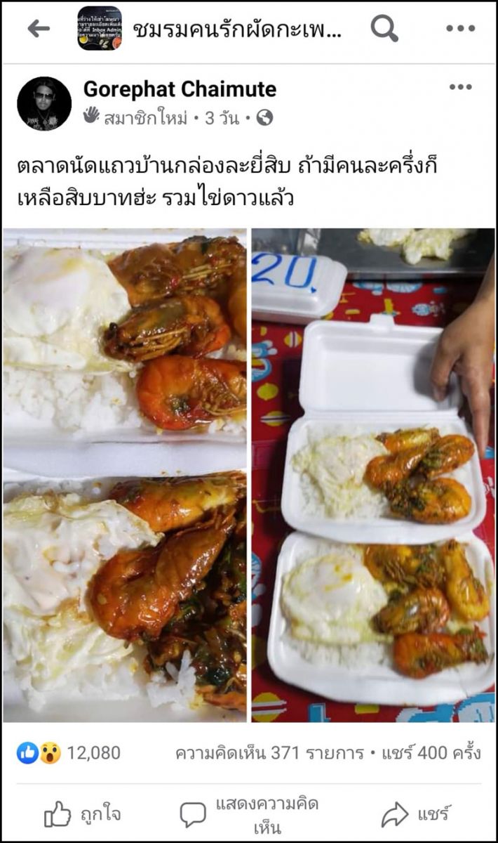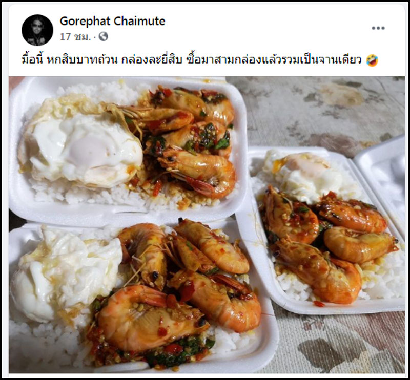 ยังมีอยู่อีเหรอ ? หลังจากที่ผู้ใช้เฟซบุ๊ก Gorephat Chaimute ได้โพสต์ข้อความและภาพอาหารในเมนูผัดกะเพรากุ้งตัวโตพร้อมกับไข่ดาว