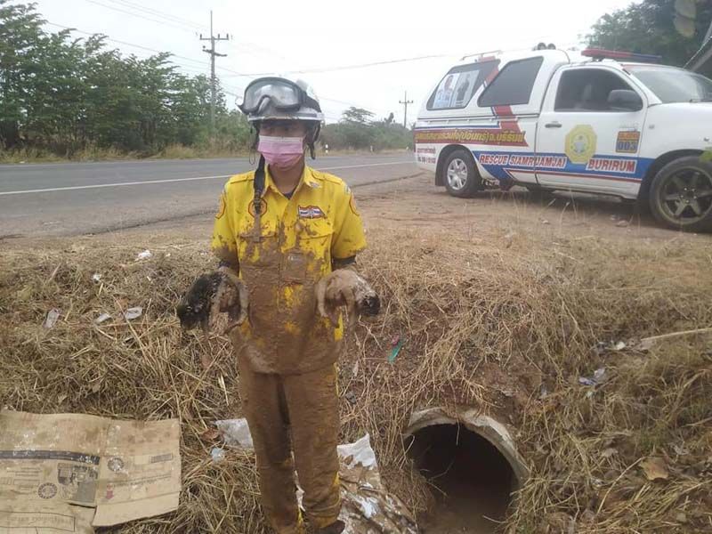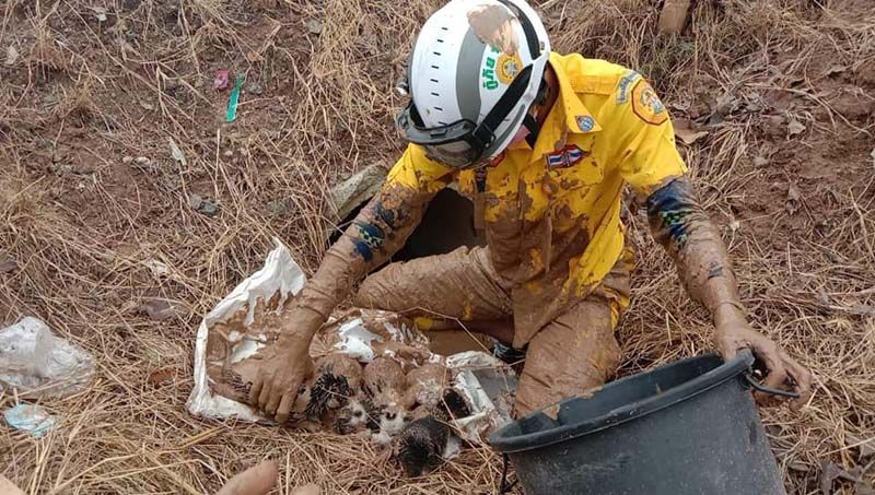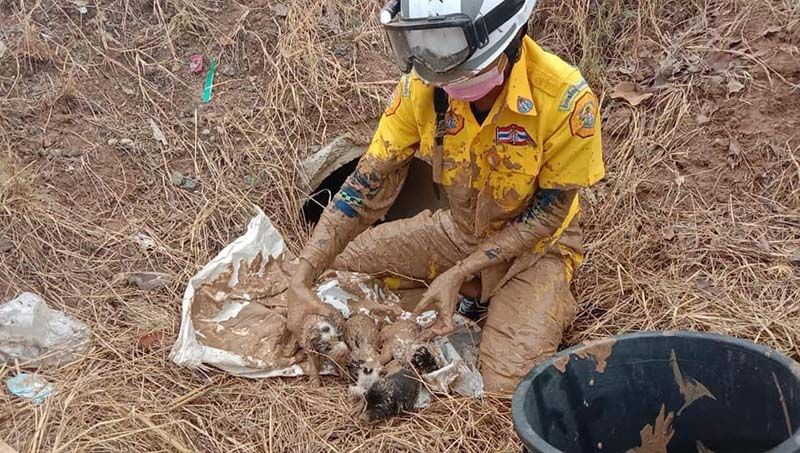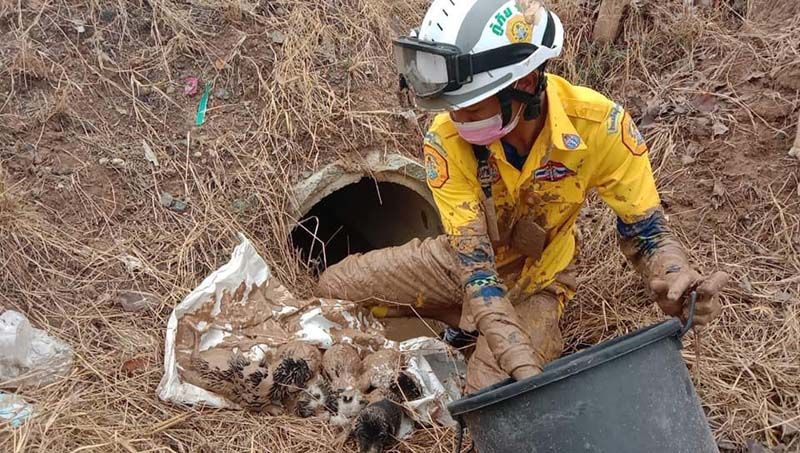 ช่วยทุกชีวิต! จนท.ไม่รอช้า รีบมุดท่อช่วยลูกหมาเกิดใหม่ ติดท่อระบายน้ำ6ตัว