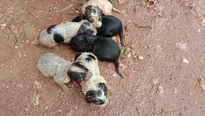เล่าว่า ” ช่วงนี้หน้าแล้ง เจ้าละออสุนัขเพศเมีย อายุ 4 ปี ได้เข้าไปคลอดลูกอยู่ภายในท่อระบายน้ำ หลังจากคลอดลูกได้เพียง 9 วัน ความโชคร้ายของเจ้าละออฝนตกหนักเมื่อคืน ทำให้น้ำจากที่ต่างๆไหลผ่านท่อ เจ้าละออออกมาได้แต่ลูกน้อย 9 วัน รวม 6 ตัว ไม่สามารถออกมาได้