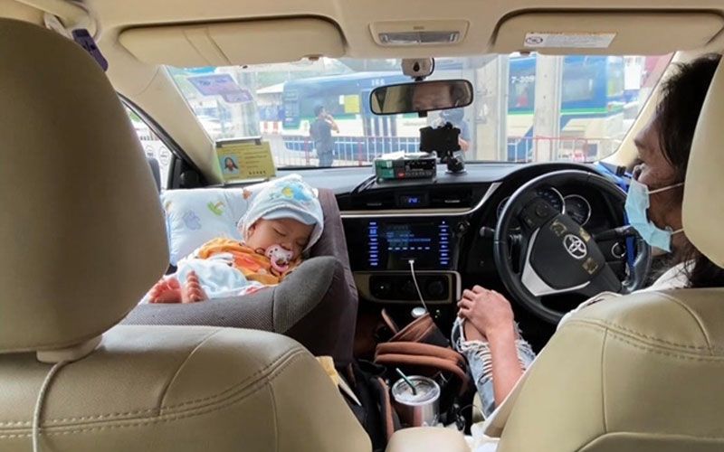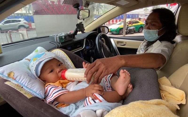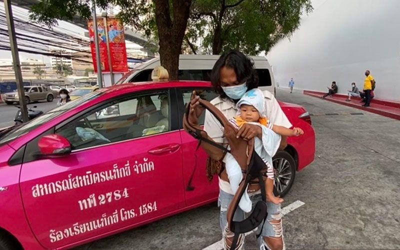 แห่แชร์ชีวิตโชเฟอร์แท็กซี่นำลูกตระเวนกิน-นอนเบาะหน้ารถขณะรับส่งผู้โดยสาร