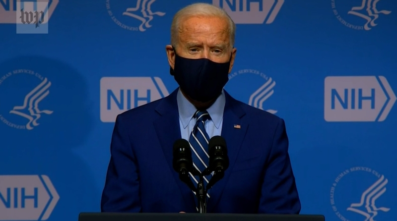 The announcement was the centerpiece of an emotional address from Biden, who made a point of speaking through his mask as he called it a “patriotic responsibility” to wear one.