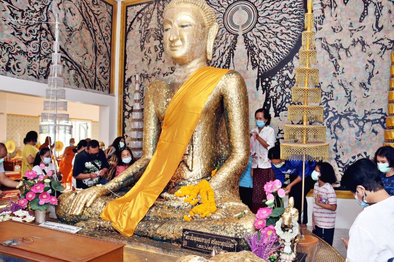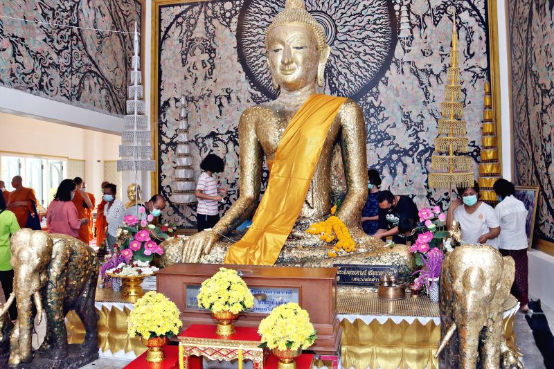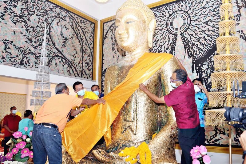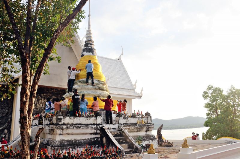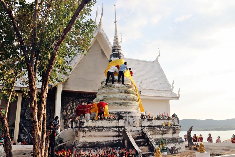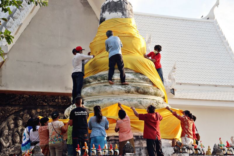 ชาวบ้านร่วมห่มผ้าจีวร ‘หลวงพ่อดำ-พระเจดีย์’ เทศกาลตรุษจีน