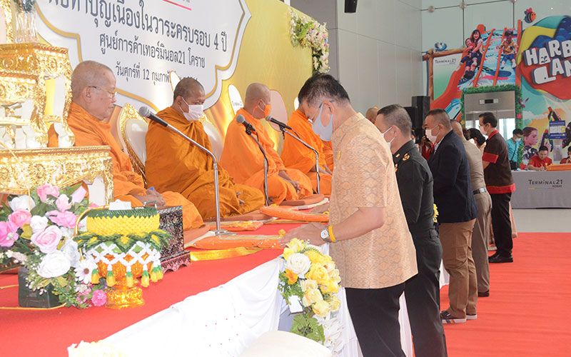 เมื่อช่วงเช้าวันนี้ (12 ก.พ.64) ที่บริเวณชั้น 1 ศูนย์การค้าเทอร์มินอล 21 โคราช อำเภอเมือง จังหวัดนครราชสีมา ได้มีพิธีทำบุญอุทิศส่วนกุศลให้กับผู้เสียชีวิตจากเหตุการณ์กราดยิงภายในศูนย์การค้าเทอร์มินอล 21 โคราชจนทำให้มีผู้เสียชีวิตจำนวน 31 ราย โดยนายวิเชียร จันทรโณทัย ผุ้ว่าราชการจังหวัดนครราชสีมา เป็นประธานในพิธี มีพระเทพสีมาภรณ์ เจ้าคณะจังหวัดนครราชสีมา ประธานสงฆ์ มีตัวแทนแม่ทัพภาคที่ 2 ผู้แทนผู้บัญชาการตำรวจภูธรภาค 3 ผู้แทนผู้บังคับการตำรวจภูธรจังหวัดนครราชสีมา หัวหน้าส่วนราชการ ทหาร ตำรวจ ภาครัฐภาคเอชน โดยมีญาติพี่น้องครอบครัวผู้เสียชีวิตร่วมพิธีครบทุกครอบครัวเข้าร่วมทำบุญด้วย