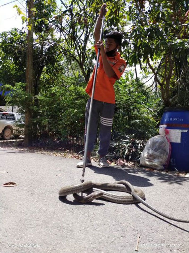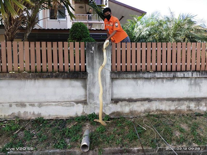 ผวา! จงอางยาว 3 เมตรเลื้อยเข้าบ้านวันตรุษจีน ชาวบ้านไม่พลาดแห่ตีเลขเด็ด