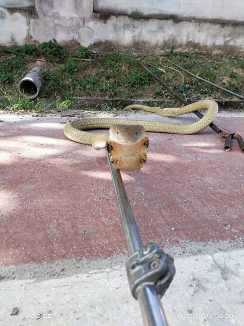 เมื่อเจ้าหน้าที่ฯชุดดังกล่าวไปถึงหน้าบ้านเลขที่ 40 หมู่ 8 ต.ฉาง อ.นาทวี พบงูจงอางกำลังเลื้อยอยู่บริเวณหน้าบ้าน จึงได้นำอุปกรณ์ในการจับงูเข้าทำการจับทันที ในระหว่างที่เจ้าหน้าที่เข้าทำการจับงูจงอางๆมีท่าทีที่ดุร้ายขนาดถูกจับได้ยังชูคอแผ่แม่เบี้ยสู้ตลอดเวลา เมื่อเจ้าหน้าที่ฯใช้เวลาไม่นานก็สามารถจับงูจงอางไว้ได้นำมาวัดได้ยาวยาว 3 เมตร จึงนำใส่กระสอบเพื่อไปปล่อยคืนสู่ป่าธรรมชาติที่อยู่ห่างไกลบ้านเรือนผู้คนต่อไป