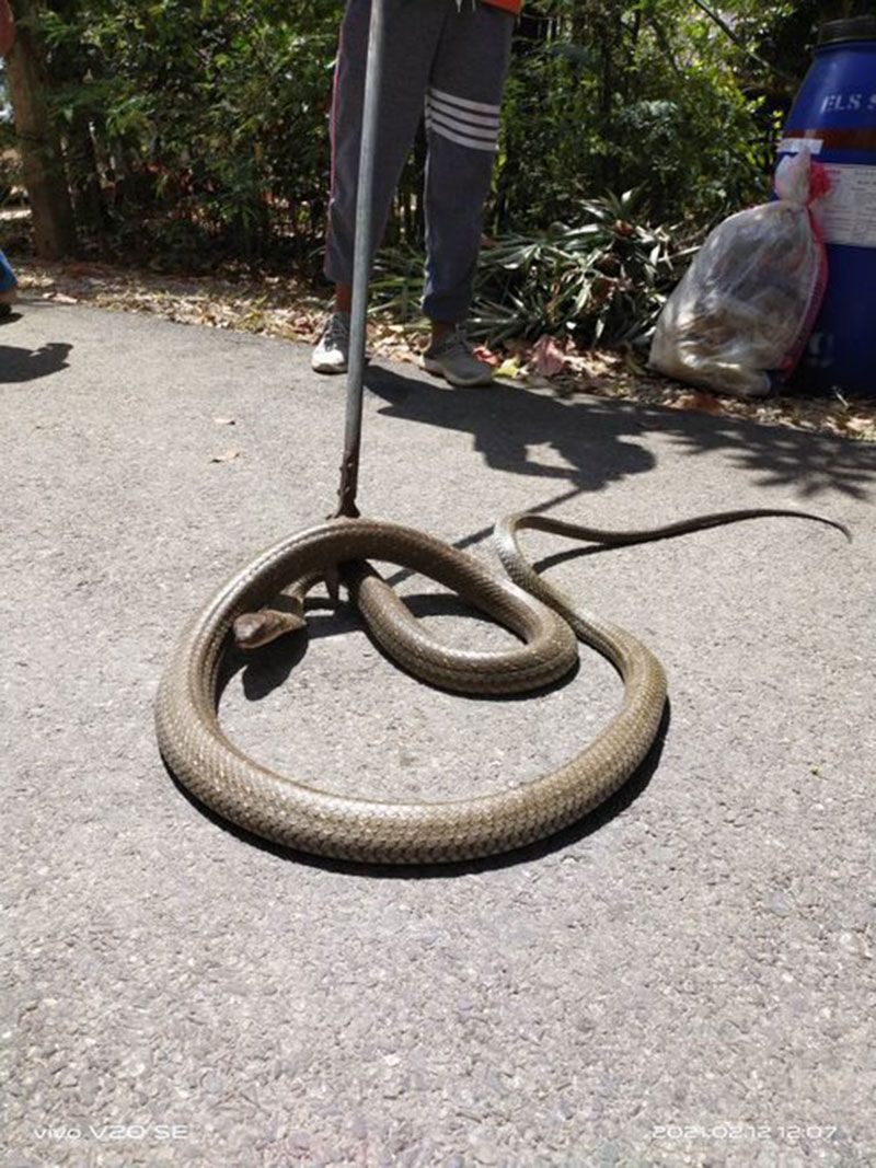 วันนี้ 12 กุมภาพันธ์ 2564 ขณะที่นายทวีศักดิ์ บุญเศษ กำลังเข้าปฏิบัติเป็นเจ้าหน้าที่หน่วยกู้ภัยมูลนิธิอริโยสามัคคีนาทวี อ.นาทวี จ.สงขลา อยู่ก็ได้รับแจ้งจากนางอำภร ยอดแก้ว อายุ 50 ปี ว่าที่บ้านเลขที่ 40 ม.8 บ้านทุ่งหม้อแตก ต.ฉาง อ.นาทวี ทางโทรศัพท์ว่ามีงูเลื้อยมาอยู่ที่บริเวณหน้าบ้านช่วงวันตรุษจีน ขอให้เจ้าหน้าที่หน่วยกู้ภัยฯมาช่วยจับงูให้ที