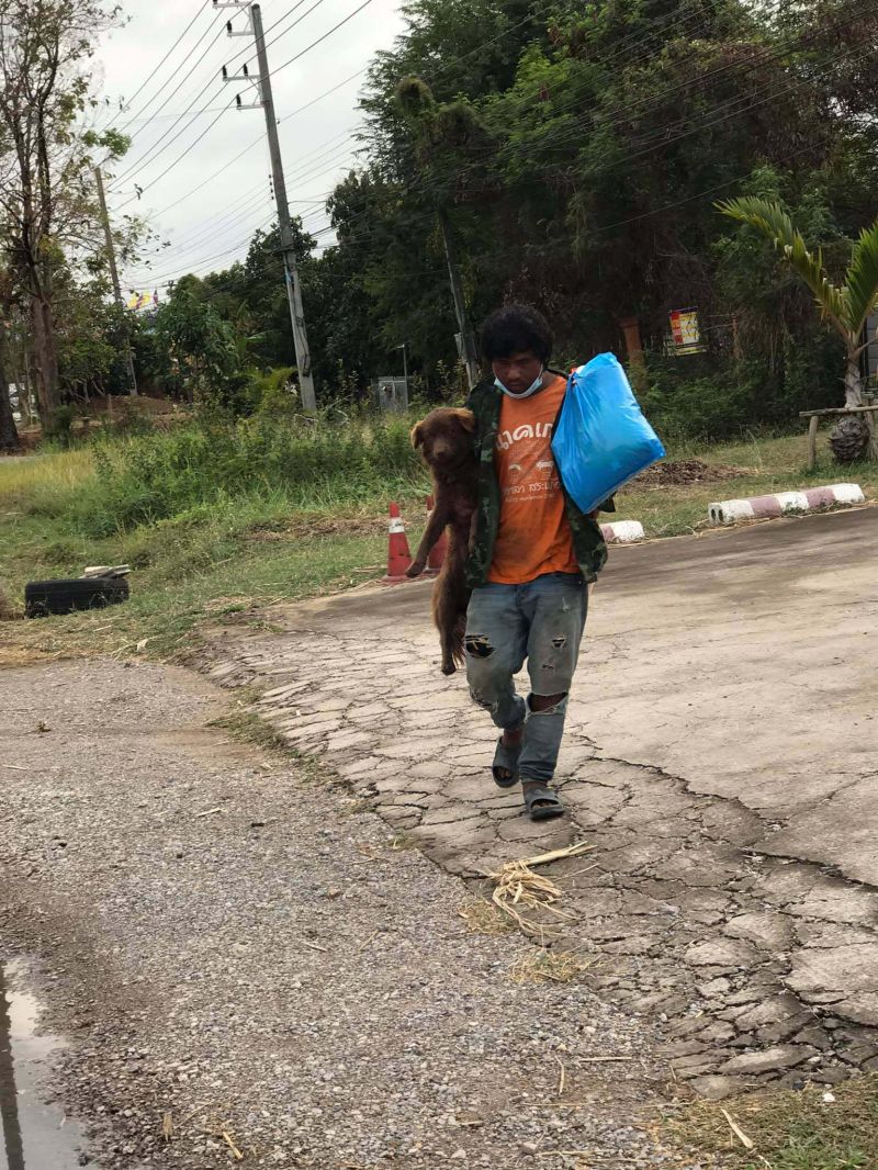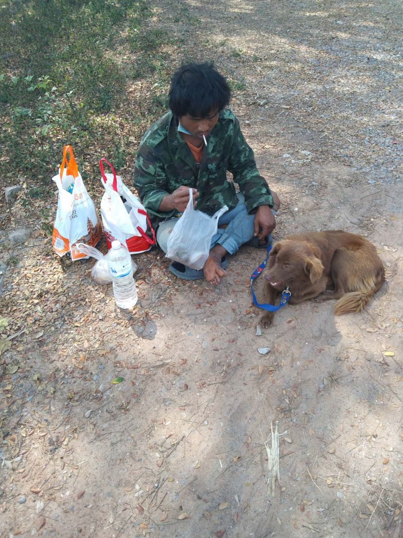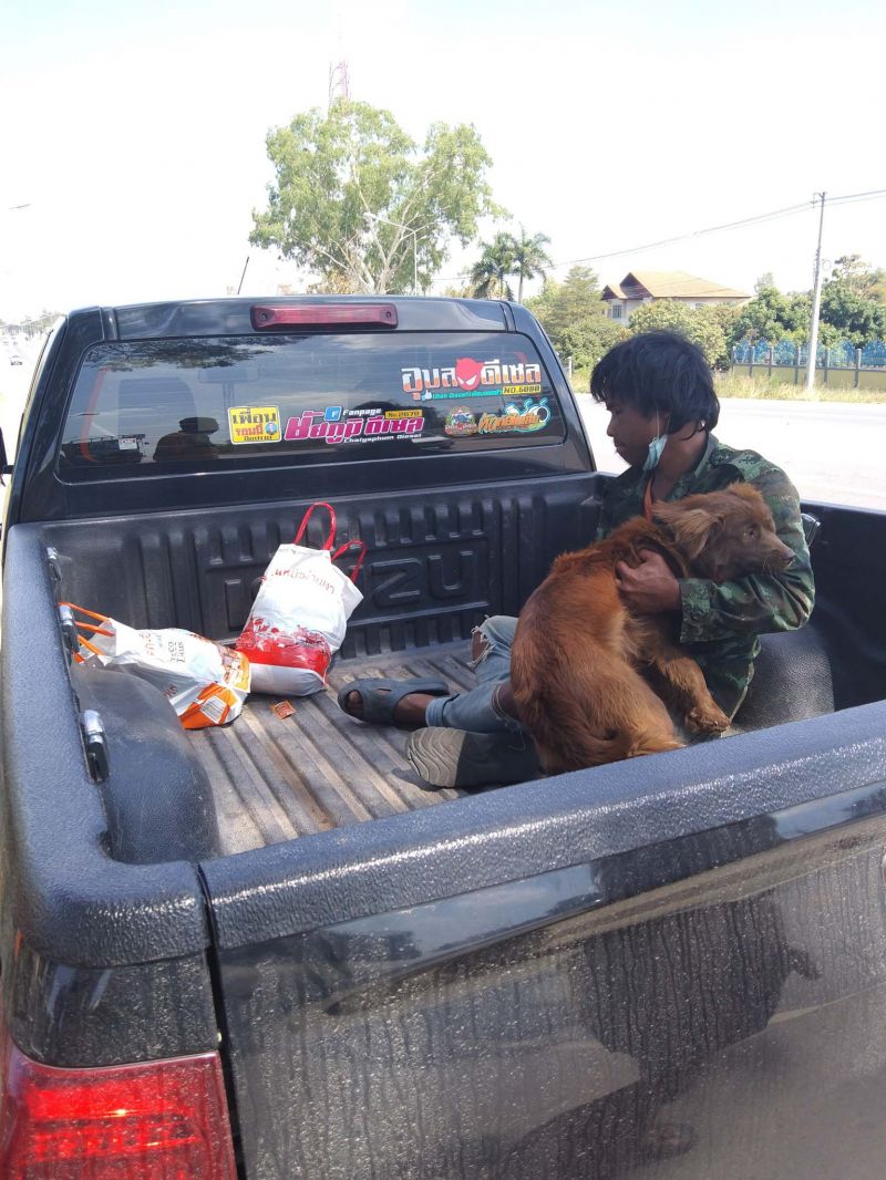 แม่เลยถามว่า ทำมั้ยไม่ขึ้นรถโดยสารกลับเมืองเลย เขาบอกว่าไม่มีเงินพอจะขึ้นรถ และถ้าขึ้นรถเขาก้อไม่ให้หมาขึ้น เขาเลยยอมที่จะเดินไปพร้อมกับหมา หมาสีน้ำตาลแดงเป็นหมาตัวผู้ผมเลี้ยงมันมาผมไม่อยากทิ้งมันครับ (ได้ยินคำนี้แล้วจุกอก) พ่อคุณเอย…รักหมามากขนาดยอมลำบากและเดินไปด้วยกัน