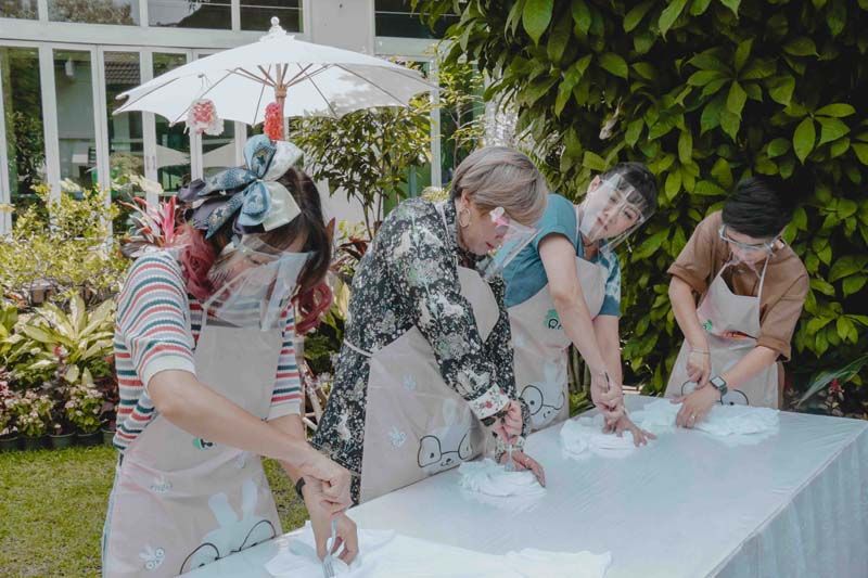 ‘คุณน้ำผึ้ง-น้อย-ลักกี้-ยมมี่’กูรูเรื่องผ้าพื้นถิ่น โชว์สกิลทำเสื้อมัดย้อม