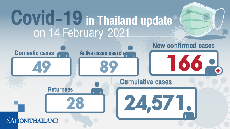 The Centre for Covid-19 Situation Administration (CCSA) on Sunday reported 166 new cases, of whom 28 were overseas travellers in quarantine facilities.