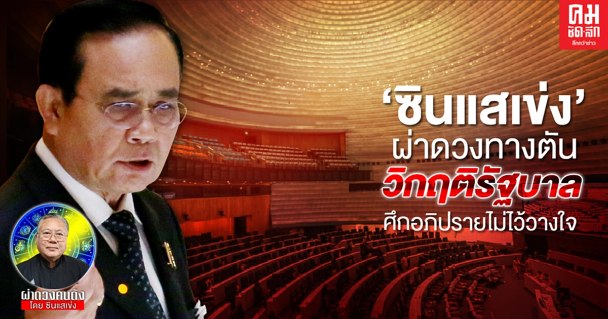 ซินแสเข่ง ผ่าดวงทางตัน วิกฤติรัฐบาลประยุทธ ศึกอภิปลายไม่ไว้วางใจ และปมความขัดแย้ง กลุ่มราษฏร ระวังมากที่สุด เหตุนอกสภาก่อความวุ่นวาย เพราะดาวพระเคราะห์ยังตกดวงขัดแย้ง แตกแยก ภายใต้ดาวมฤตยู แต่ดาวเกตุกลับเสริมดวง นายกฯ เสริมพลังบุญฤทธิ์ให้มีกำลัง ฝ่าอุปสรรคคู่อริ ทำให้ศัตรูพ่ายอย่างไม่คาดคิด ถึงดวงจะกระทบบ้างจากแรงยุแหย่ ผู้ไม่หวังดี สร้างความวุ่นวายจากกลุ่มพวกนอกสภา ก่อความสับสน สร้างความไม่เข้าใจดื้อดึง เพราะดาวจรเข้าแทรก กับเหตุการณ์ที่ไม่คาดคิด จึงเตือนรัฐบาลให้รอบครอบทั้งในสภา และนอกสภา เพราะจะถูกแรงกดดันกลั่นแกล้งและเบียดเบียนคุกคามบ้านเมืองให้ได้รับความเดือดร้อน