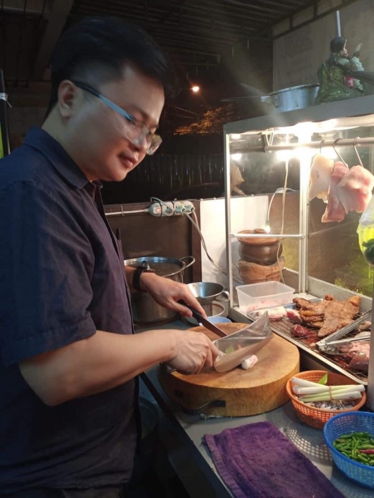 บนเวทีการชุมนุมบนท้องถนน ทนายน้อยปราศรัยปลุกเร้าผู้คน เนื้อหาเครียด ไม่มีตลก แต่เลิกการชุมนุม ทนายน้อยจะนัดเพื่อนๆมาล้อมวงกินลาบก้อยซอยจุ๊ ดื่มเหล้า ฟังหมอลำเป็นเรื่องปกติ
