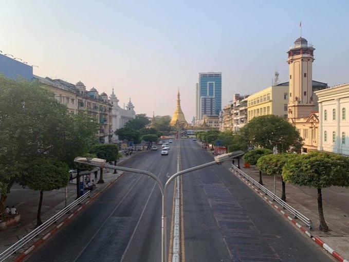 กรุงย่างกุ้ง ในเช้าวันนัดหยุดงานทั้งประเทศ