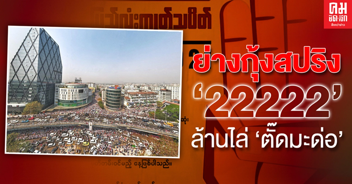 สื่อออนไลน์ในเมียนมา ต่างนำเสนอภาพและข่าวประชาชนทั่วประเทศเมียนมา นัดหยุดงานในแคมเปญ ‘22222’ หรือ “22.2.2021” ที่จุดเริ่มที่ย่างกุ้ง ก่อนจะไหลลามไปทั่วแผ่นดิน ไม่ว่าจะเป็นเนปิดอว์ ,มัณฑะเลย์, พะสิม, พะโค, มะริด, ทวาย, หลอยก่อ, เมียวดี, ผาอัน, ปินโหลง ,หลอยแหลม ,หล่าเสี้ยว, เมียวดี, ท่าขี้เหล็ก ฯลฯ