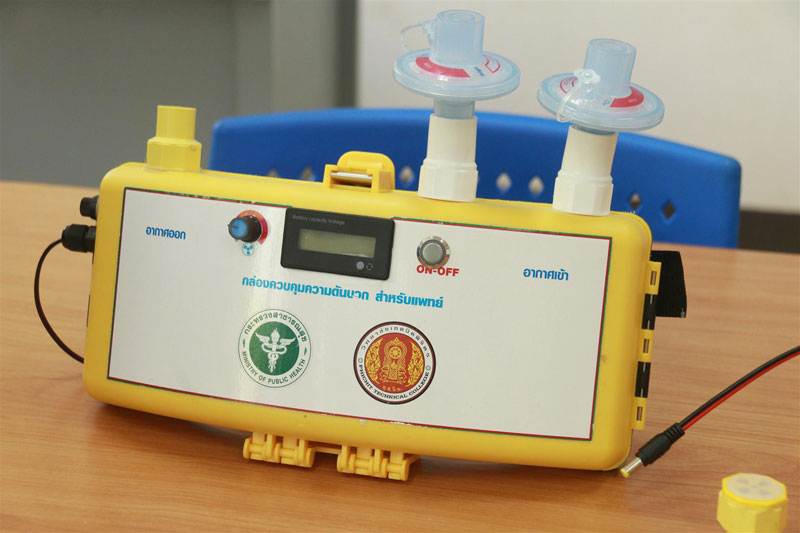 สำหรับกล่องแรงดันบวกและแรงดันลบ ซึ่งทางวิทยาลัยเทคนิคพิจิตรได้ทำการประดิษฐ์และส่งมอบให้กับโรงพยาบาลพิจิตร จำนวน 26 ชุด รวมถึง ทางคณะครูจากวิทยาลัยสว่างแดนดิน จังหวัดสกลนคร มาเรียนรู้ต่อยอดเพื่อทำการผลิตให้กับทางคณะแพทย์ในพื้นที่ต่อไป