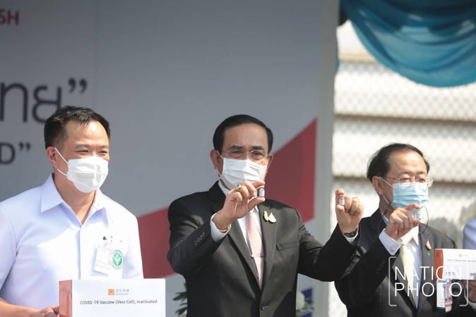 Netizens didn’t hold back criticism of Prime Minister Prayut Chan-o-cha and his ministers after they were seen in a photo session holding what appeared to be a bottle of Sinovac vaccine, which is highly sensitive to temperature, during a welcome ceremony to receive the vaccines from China on Wednesday.