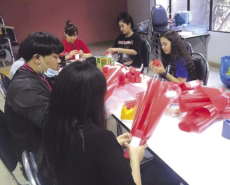 ด้าน ผศ.วิจิตร สนหอม อาจารย์ประจำสาขาวิชา กล่าวว่า นักศึกษาหลายๆ คนจะใช้เวลาว่างจากการเรียนหารายได้เพิ่มเติมจากการรับงานจัดดอกไม้ แต่ด้วยปัญหาการแพร่ระบาดของโควิด-19 ในขณะนี้ส่งผลกระทบให้ช่วงนี้ไม่มีงาน จึงเห็นว่านี่เป็นโอกาสที่ดีที่จะได้ฝึกให้นักศึกษาได้แสดงผลงานวิชาชีพ และยังเป็นการหารายได้ให้กับนักศึกษาได้อีกทางหนึ่ง จึงส่งต่องานนี้ให้กับนักศึกษาสาขาวิชาศิลปะประดิษฐ์ในงานคหกรรมศาสตร์ คณะเทคโนโลยีคหกรรมศาสตร์ มหาวิทยาลัยเทคโนโลยีราชมงคลธัญบุรี (มทร.ธัญบุรี) ประดิษฐ์โครงสร้างช่อ 10,000 ช่อ เพื่อส่งออกไปยังสาขาของมิสเตอร์โดนัท กว่า 300 สาขาทั่วประเทศ เป็นช่อกุหลาบวาเลนไทน์สื่อรักที่ผู้รับสุขทั้งใจ อิ่มทั้งท้อง”