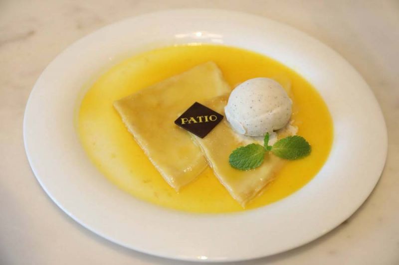 ปิดท้ายด้วยเมนูขนมหวาน หากมาที่ PATIO แล้วต้องสั่ง ก็คือเครปยอดฮิตขายดีตลอดกาลอย่าง เมนู Black Crepe-Nutella Banana and Berries หรือ เมนู Crepe Suzette เครปเนื้อเนียนนุ่มแป้งบาง ราดด้วยซอสส้มชุ่มๆรสหวานซ่อนเปรี้ยว จับคู่กับไอศกรีมวานิลลา