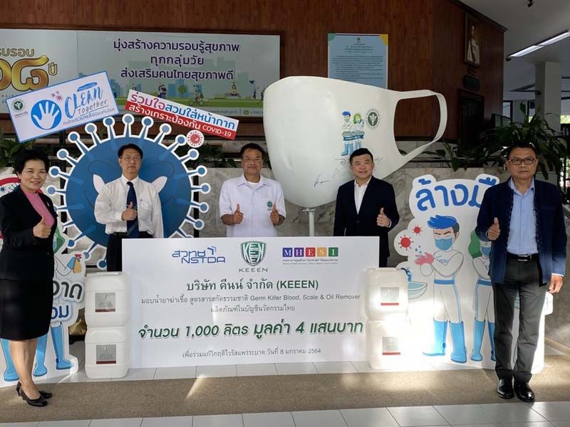 บริษัท คีนน์ จำกัด นำโดย ดร.วสันต์ อริยพุทธรัตน์ ผู้ก่อตั้งและประธานเจ้าหน้าที่บริหาร บริษัท คีนน์ จำกัด ได้ดำเนินงานโครงการมอบผลิตภัณฑ์ร่วมต้านโควิด-19 มาอย่างต่อเนื่องนับตั้งแต่เกิดการแพร่ระบาดของไวรัสโคโรนาในปี 2562 โดยได้สนับสนุนผลิตภัณฑ์คีนน์ เจิม คิลเลอร์บลัด, สเกล แอนด์ ออยล์ รีมูฟเวอร์ (KEEEN GERM KILLER BLOOD,SCALE & OIL REMOVER) ซึ่งเป็นผลิตภัณฑ์ที่ขึ้นบัญชีนวัตกรรมไทยมีคุณสมบัติสำหรับฆ่าเชื้อโรค แบคทีเรีย เชื้อรา เชื้อไวรัส รวมถึงสามารถขจัดคราบเลือด คราบไขมันคราบที่เกิดจากเชื้อรา และคราบตะกรันที่เกิดจากสารอินทรีย์ได้ดีสามารถย่อยสลายได้เองตามธรรมชาติ โดยไม่ส่งผลกระทบต่อระบบนิเวศและสิ่งแวดล้อม ซึ่งจะช่วยให้บุคลากรด่านหน้าในการช่วยเฝ้าระวัง ควบคุม และป้องกันโรคโควิด-19 ได้ปฏิบัติงานอย่างมั่นใจและปลอดภัย
