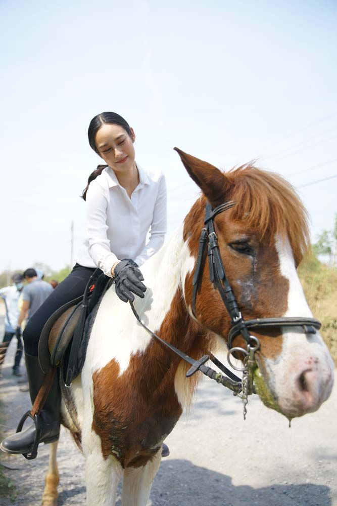 งานนี้ “นาว” แอบกระซิบบอกว่าเห็นขี่ม้าในละครได้อย่างที่เห็น ต้องยกความดีให้พระเอกของเรานี่ล่ะเพราะความที่นาวไม่ได้ขี่ม้ามานาน ต้องกลับมาขี่อีกครั้ง ขึ้นบนหลังม้าทีไรก็เกร็งทุกครั้ง งานนี้พอร์ชเลยเป็นพระเอกนอกจอ ช่วยกับทีมงานคอยดูแลอยู่เบื้องหลัง และพอได้มาขี่ม้าเล่นยามว่างรอบนี้ ก็ยังมีอาการเกร็งให้ได้เห็น โดยมีพอร์ชคอยช่วยจับและประคองม้าอยู่ใกล้ๆ